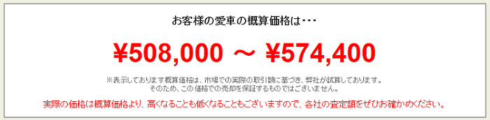↑の画像のように、愛車の買取相場がその場で表示されます。